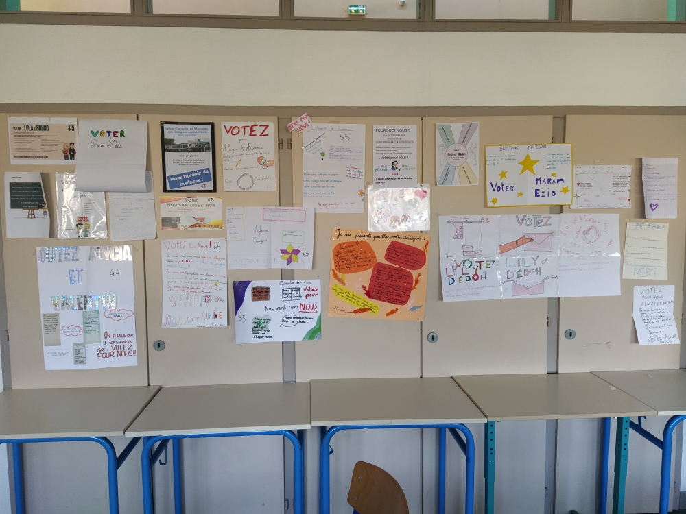 Avant le vote, les élèves candidats ont préparé leurs programmes et affiches électorales.