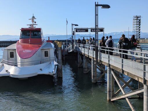 Après une nuit mouvementée car animée par de jeunes Allemands infatigables, nous voilà partis en catamaran à Constance. Chacun a enfourché son vélo en direction de l'île de Reichenau, inscrite au patrimoine mondial de l'Unesco. Nous avons poursuivi, avec les fesses endolories, par la découverte de la magnifique ville de Constance. Nous rentrons ravis mais fatigués et nous espérons que la nuit sera calme et réparatrice...